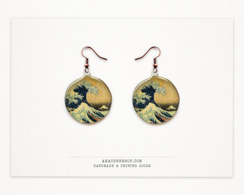 Hokusai Wave Earrings – Antique Copper Hooks